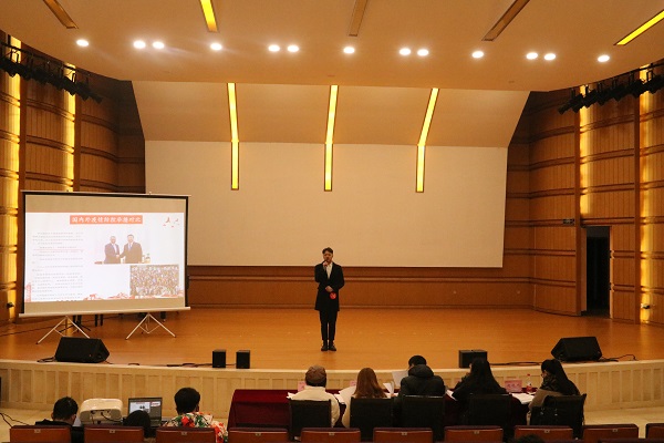 本次“魅力团支书”评选活动分为“微团课讲解”和“特长展示”两个环节。首先,彭劲豪以“深学笃用习近平新时代中国特色社会主义思想和党的十九大精神”主题开展微团课,他的语言通俗易懂、生动、有趣,整各课堂从开头到结尾平叙、高潮得当,使得在场的观众很快融入他的故事环节。在课堂中,他积极和观众进行互动,成功的带动了全场的氛围,并在评分中获得90分的高分。