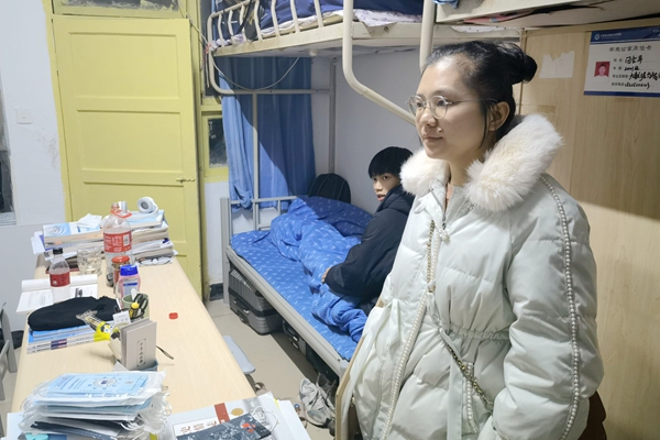 “因为离家远,又买不到票,所以元旦节只能留在学校,很感谢黄经理和老师们对我们留校生的关心,专门到宿舍来慰问我们,我们觉得这个元旦节过得很温暖。”来自21级计科1班的耿梦婷说道。