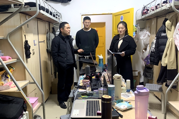 为深入了解留校员工的宿舍生活情况,增强同学们的幸福感,12月31日晚9时,公司经理黄世权与全体辅导员共同走访员工寝室,关怀、慰问留校同学。