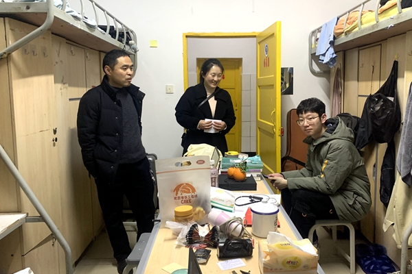在走访过程中,黄经理和老师们为同学们送上新年祝福,并提醒他们要多和家人联系,告诉家长自己在学校的情况,让家人们放心。