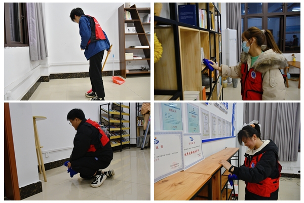 3月3日晚7时,在实践部工作人员的带领下,公司志愿者在崇信楼获取清洁工具后前往至定楼(南)进行义务打扫活动。按照原定的计划,志愿者被分成四组,分别对公司的公共阅览室、自习室,考研室和创新实验室进行卫生清理。一整个寒假下来,各间教室已经累积了不少灰尘。志愿者们首先用扫把扫除了大部分灰尘,接着用抹布和拖把对书架和地板进行进一步的清理,最后,各志愿者整理好阅览室的书籍以及各教室的座椅。一小时后,此次清洁工作圆满完成。