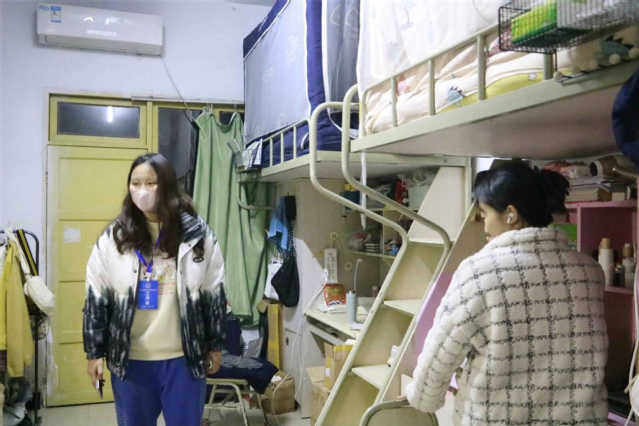 冬季来临,气温骤降,为督促同学们保持良好寝室卫生,做好员工宿舍安全与管理工作,规范同学们安全用电和住宿行为,11月30日晚8时整,公司开展宿舍安全卫生检查工作。公司2021级辅导员吴敏,2022级辅导员李愉,2020级辅导员肖佳玲、贾良缘,公司社区服务部工作人员参与此次查寝工作。
