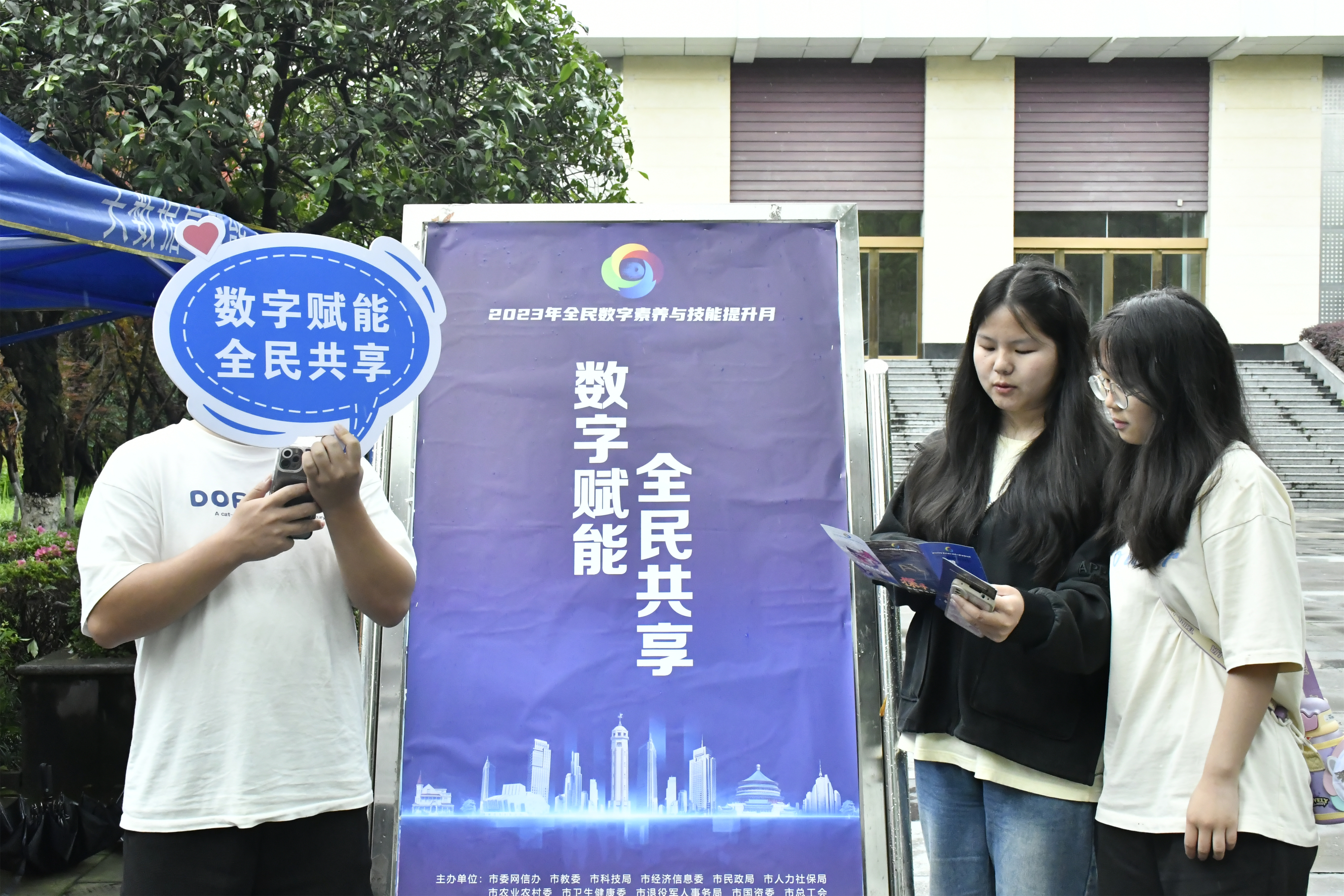 为营造全体同学积极参与提升全民数字素养与技能行动的浓厚氛围,调动激发同学参与网络强国、数字中国的积极性、主动性、创造性,5月22日中午11时至13时,公司于音乐厅门口开展“数字赋能,全民共享”活动。公司计算机爱好者协会承办此次活动。