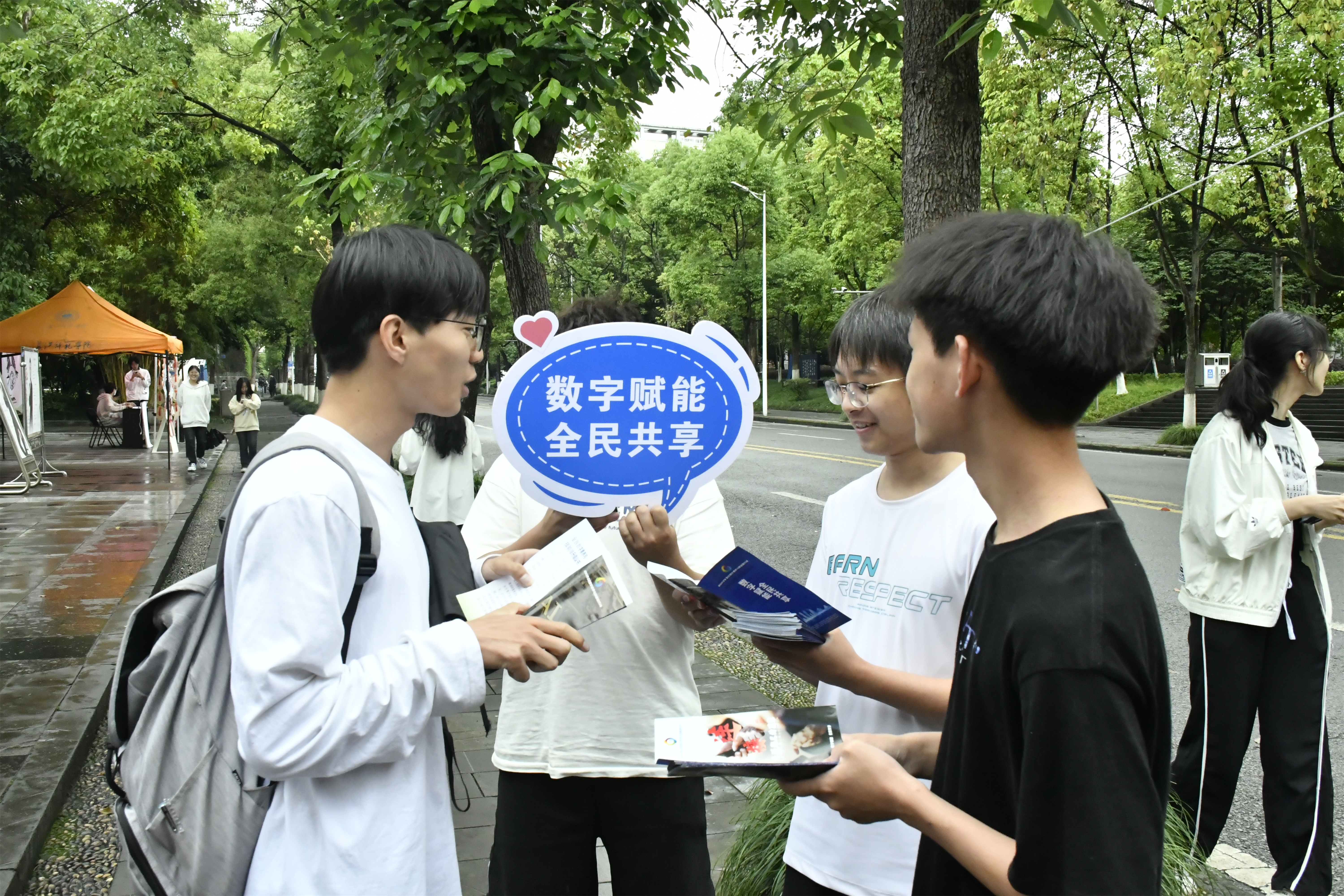 活动伊始,工作人员通过横幅、宣传单、海报等形式向全校同学进行数字赋能活动宣传。他们通过讲解宣传折纸的方式为同学们介绍了数字理念和数字知识,并告诉同学们,作为数字时代的老员工,应该拥有数字思维、具备数字素养、提升数字技能,争做数字技术的推动者。同时,工作人员还倡导同学们文明上网,增强数字安全防护意识,营造一个安全的网络生态环境。