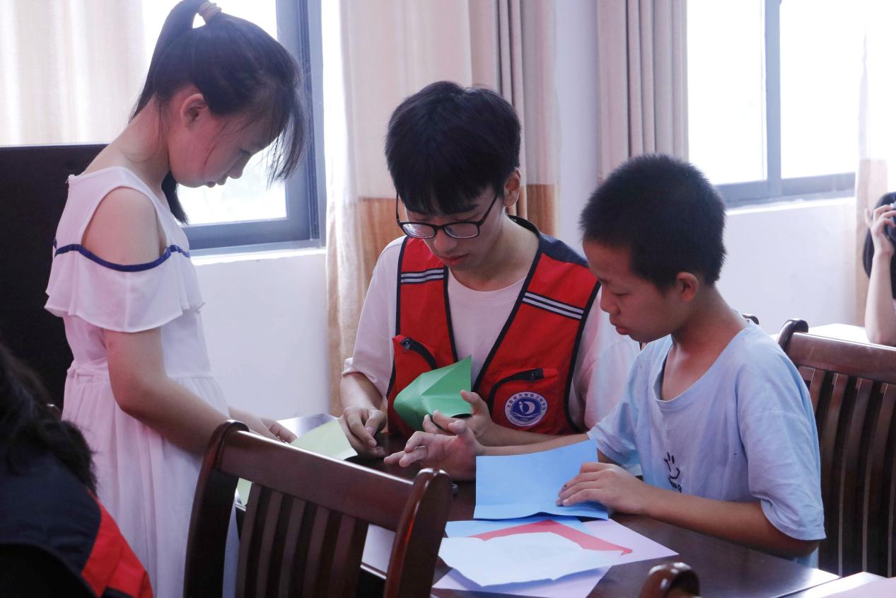 紧接着,团区委负责人带领小朋友进行折纸小游戏,现场气氛其乐融融。孩子们在学习制作的过程中认真仔细,并积极询问志愿者。