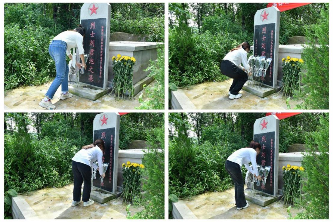为营造崇尚英烈、缅怀英烈、学习英烈的浓厚氛围,加强爱国主义教育,传承红色基因,赓续红色血脉。志愿者团队前往刘君池烈士墓开展祭扫活动,以实际行动致敬先烈。站在刘君池烈士墓前,志愿者们低头默哀三分钟,怀着对刘君池革命先烈的崇高敬意献上鲜花。祭扫活动的开展,让每一名志愿者在心灵上接受了洗礼,思想上得到了升华。