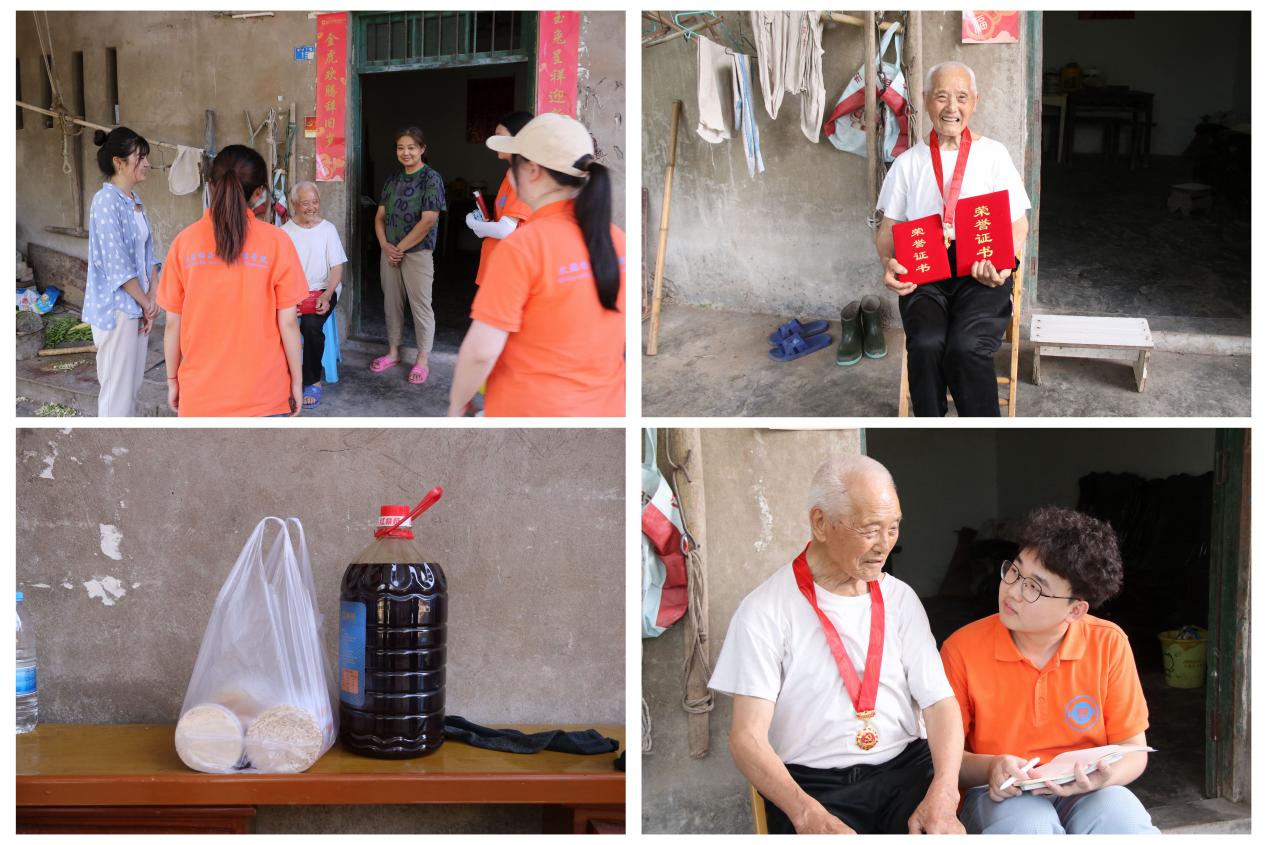 习近平总书记强调:“大力发扬红色传统、传承红色基因,康续共产党人精神血脉,始终保持革命者的大无畏奋斗精神,鼓起迈进新征程、奋进新时代的精气神”。老党员是党的宝贵财富,更是我们的宝贵财富。为强化使命担当,聆听红色故事,感悟初心使命,继承和发扬老党员艰苦奋斗的精神,7月5日j9九游会“逐梦”青年志愿者三下乡实践团队在肖佳玲老师的带领下前往龙桥社区第七大队走访慰问党员罗时胜老人。