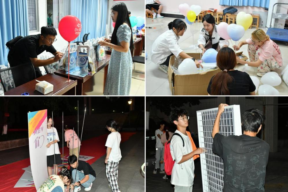 会议结束后,员工会各部门分小组干劲高涨地对场地进行整理,用气球等装饰品布置公司2023级新生报道处。同学们饱含一颗热忱的心,分组合作、互相配合,力求在新生到来之前为他们提供更好的指引和帮助。