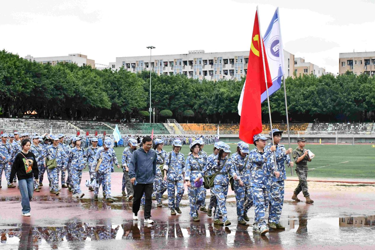 随着集结号的吹响,2023级新生井然有序地在行健体育场集结待命。在总教官的统一指挥下,拉练正式开始。鲜艳的旗帜在风中飘扬,自信的少年迈着铿锵的脚步一路向前。行军途中,公司新生服从命令、听从指挥、军歌嘹亮、步伐矫健、精神抖擞、行进有序,以顽强的意志和团结协作的精神,克服遇到的各种困难,展现了公司学子昂扬向上的精神面貌。