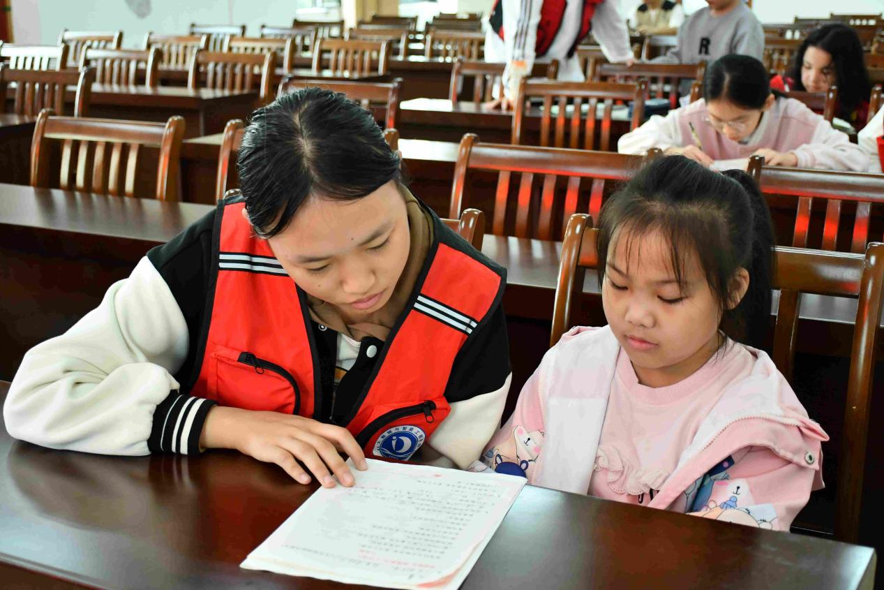 活动伊始,志愿者对小朋友们进行作业辅导,进一步帮助他们消化和巩固课内所学的知识。