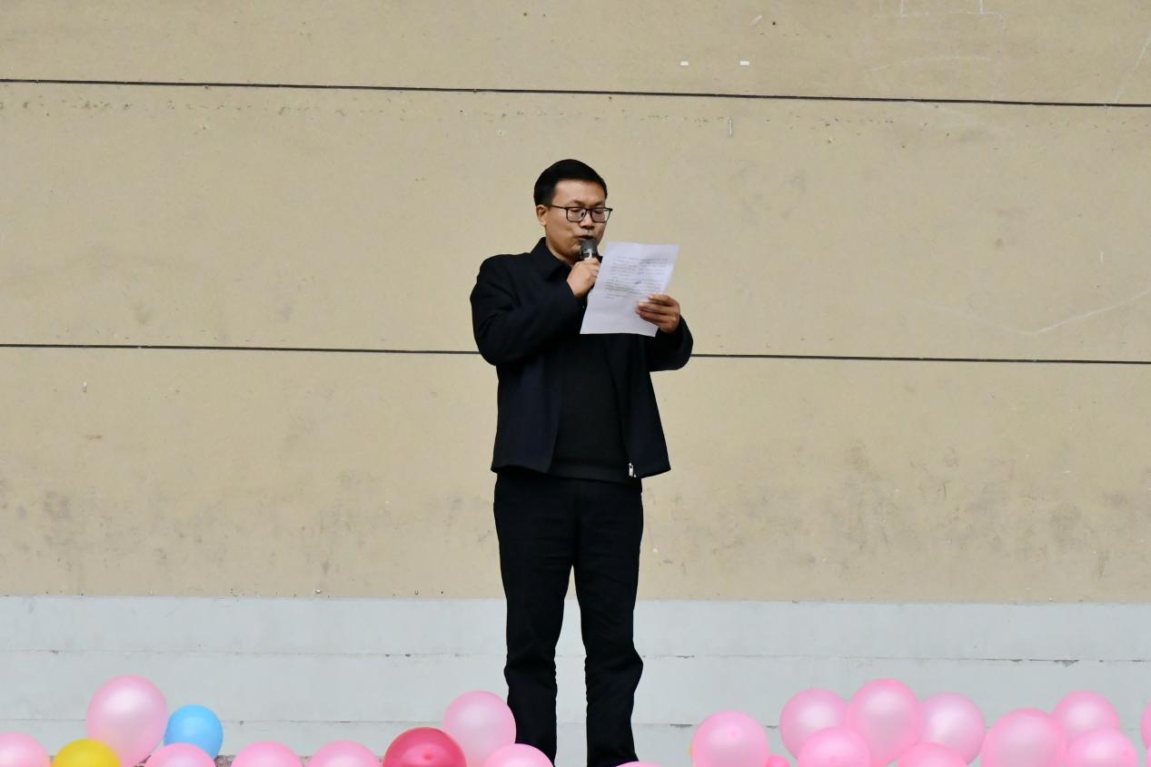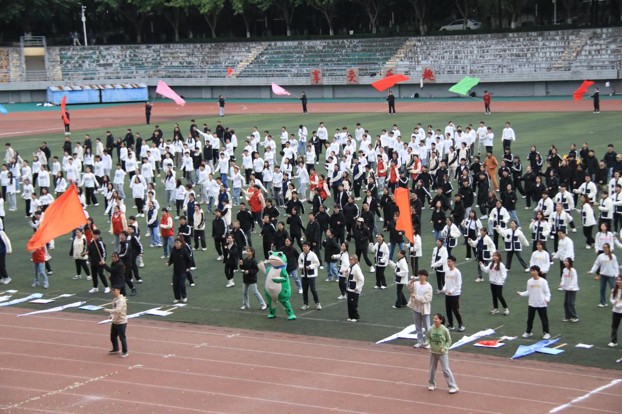 紧接着,刘应成副经理宣布趣味运动会开始,彩旗队绕着操场散开,五彩的旗帜在阳光下飘散,队员们挥舞着彩旗,脸上洋溢着灿烂的笑容。音乐响起,欢快的节奏让整个操场充满了活力。