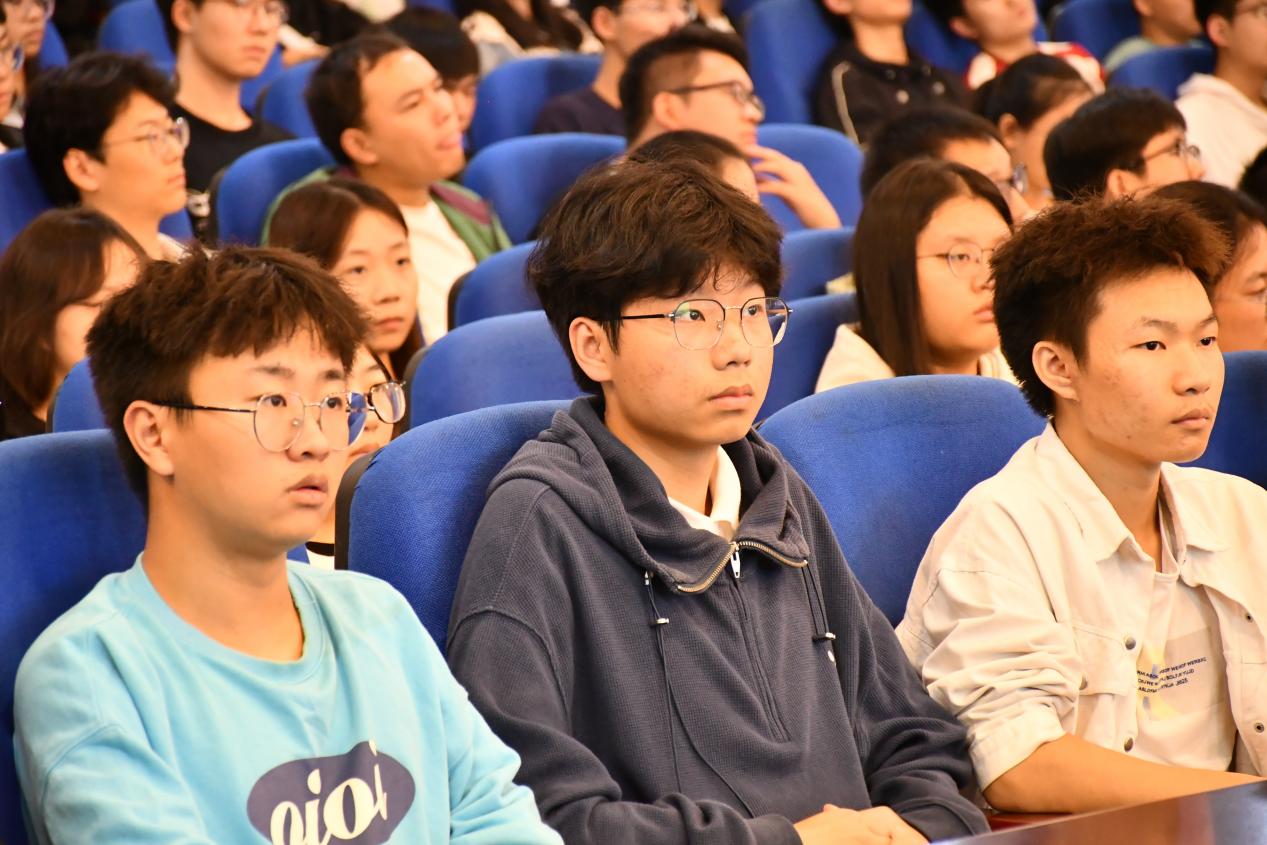 讲座期间,同学们认真聆听,掌声此起彼伏。讲座内容灵活有趣、逻辑严谨,不仅让同学们走出了当前的困境,还引导同学们培养了良好的作息时间以及参加学科竞赛的意识。