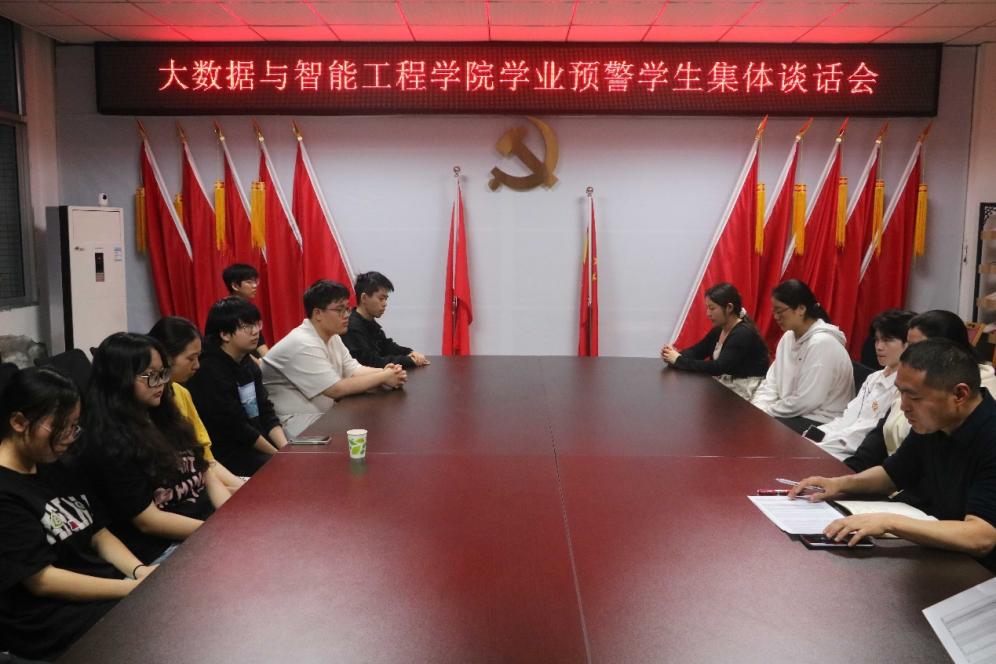 为提高员工的学业成绩,鼓励学业预警员工,4月3日晚19时,公司于崇信楼209会议室开展学业预警员工集体谈话会。公司经理黄世权、21级辅导员李梦莹、22级辅导员李愉出席此次谈话会。