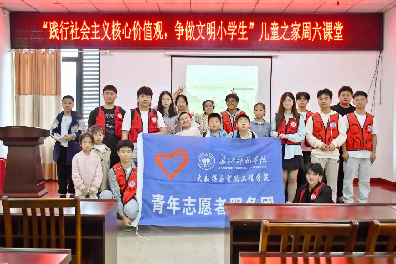 课堂结束后,志愿者们与小朋友们合影留念,记录下美好的瞬间。随后,志愿者们和小朋友们整理好桌椅,有序地离开活动现场。