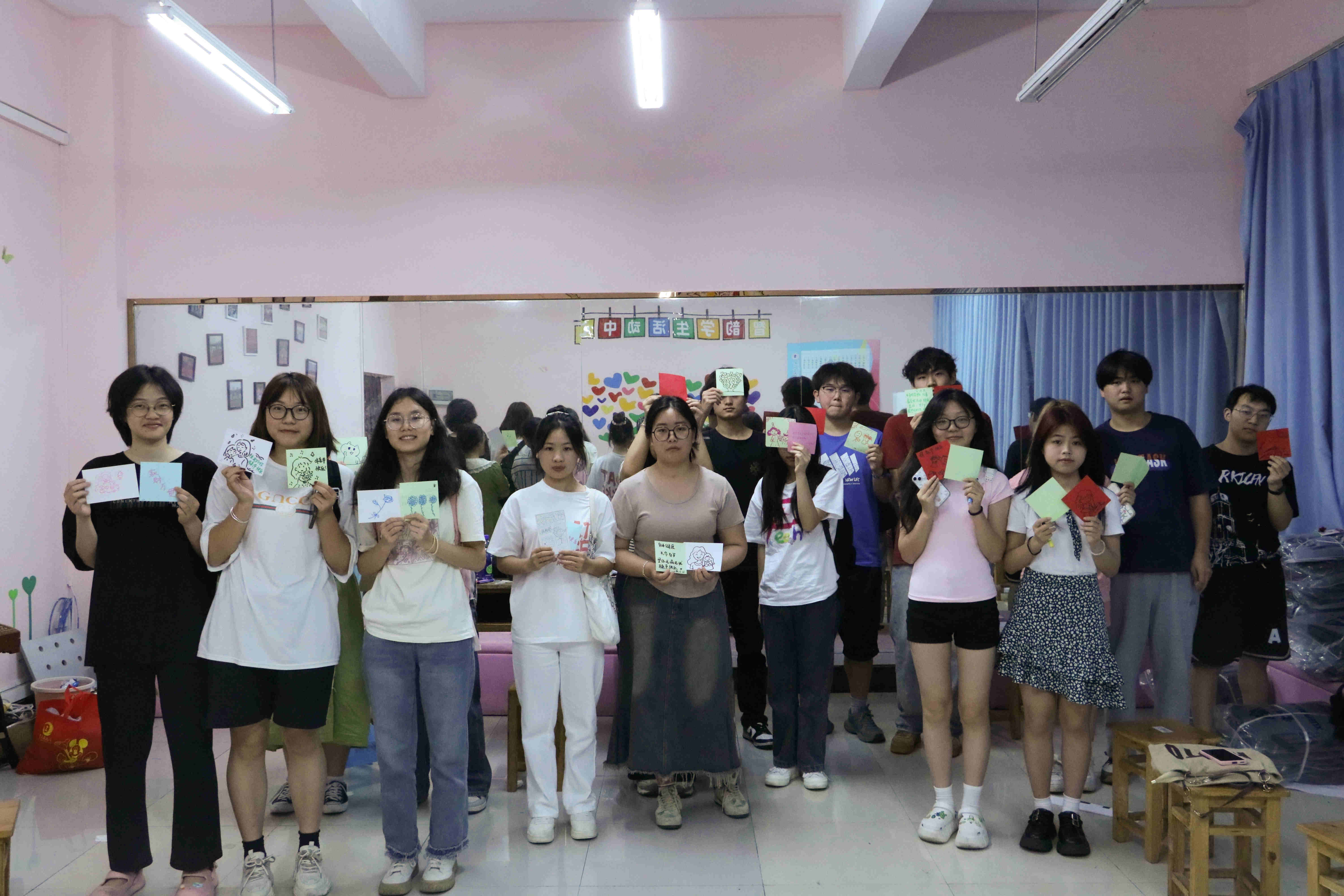 最后,在同学们将自己的卡片分享给母亲后,负责人收集了每位同学的卡片,并在合影留恋后结束了此次活动。