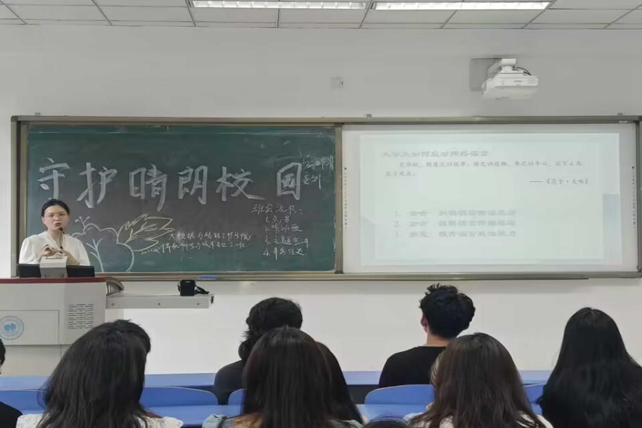 在当今信息爆炸的时代,网络谣言如同幽灵般无处不在,给社会和个人带来了诸多负面影响。为了加强员工对网络谣言的识别能力和防范意识,6月2日下午公司2022级辅导员李愉于崇礼楼104开展“拒绝网络谣言,守护晴朗校园”特色班会。公司2022级计科2班全体成员参与此次班会。
