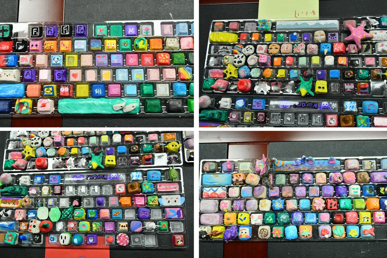 随后,活动正式开始。同学们发挥自己的想象力与创造力,用丙烯笔在键帽上绘制出校园建筑的轮廓,或是绘制自己喜欢的图案,用黏土做出了各种小巧的装饰,将键帽逐渐组合成了完整的键盘。过程中,同学们不仅体验了创作的乐趣,更在团队协作中增进了彼此的了解和信任。