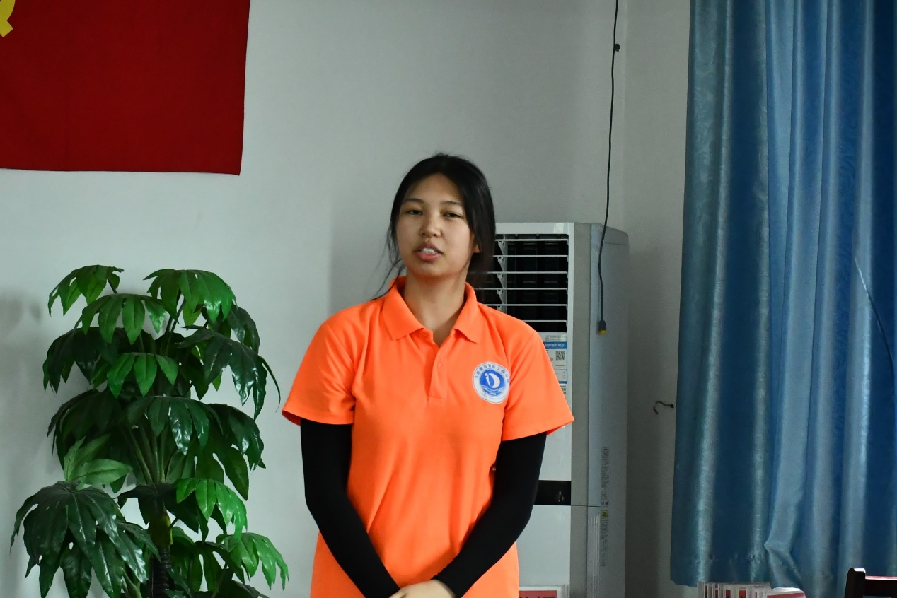 随后,“逐梦”青年志愿者服务团的代表上台发言,她分享了参与支教活动的初衷和期待,表达了对教育事业的热爱和对孩子们的关心。她表示,将秉持“携手共进,逐梦领航”的精神,用实际行动践行青年志愿者的责任与担当,为孩子们的成长贡献自己的力量。
