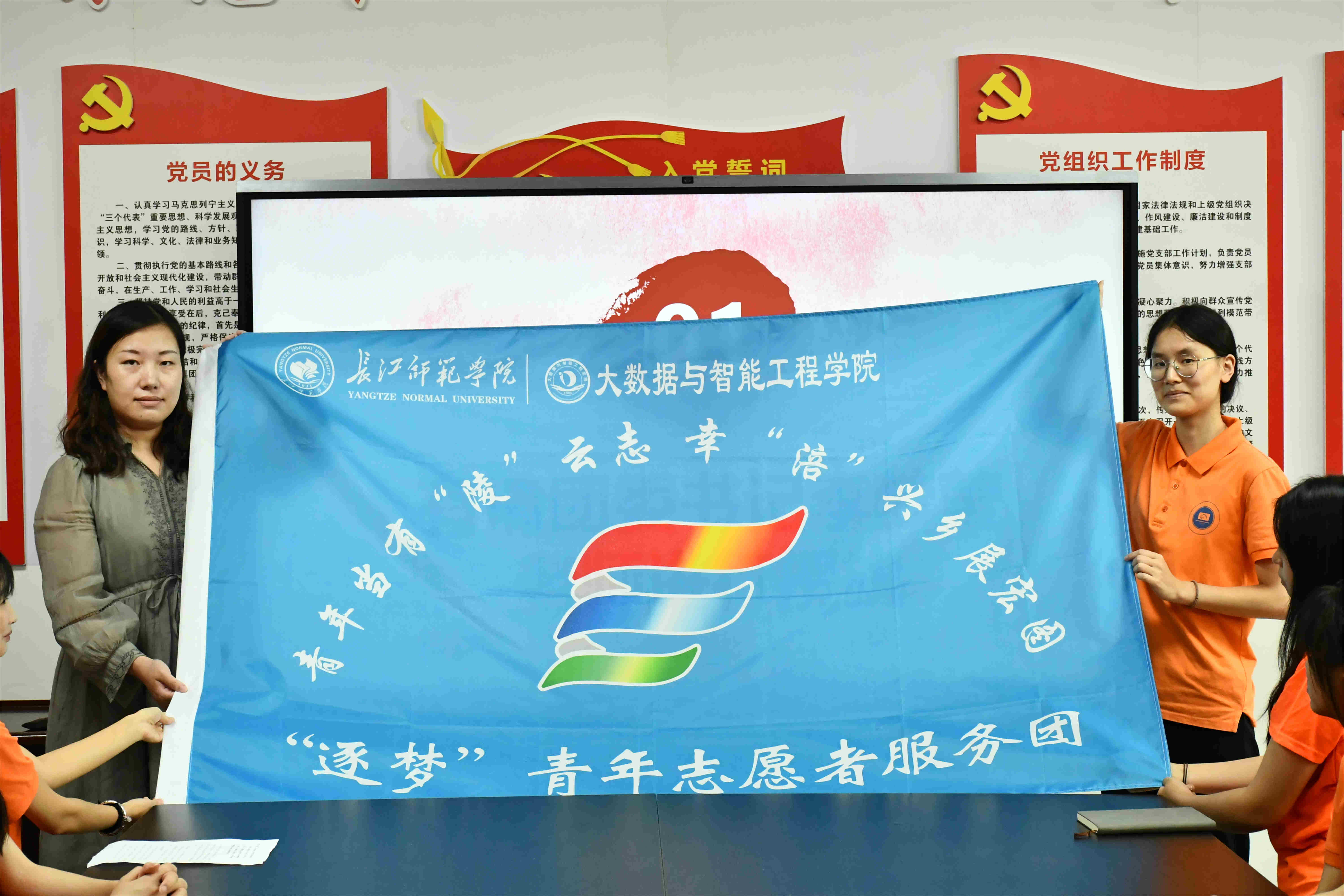 会议伊始,由李梦莹老师为“逐梦”青年志愿服务团进行授旗。紧接着,志愿者代表陈莹燏同学带领全体志愿者进行宣誓并进行发言,承诺始终坚定理想信念,聚焦国家发展战略,结合自身所学专业,用实际行动谱写好乡村振兴的篇章贡献青春力量。