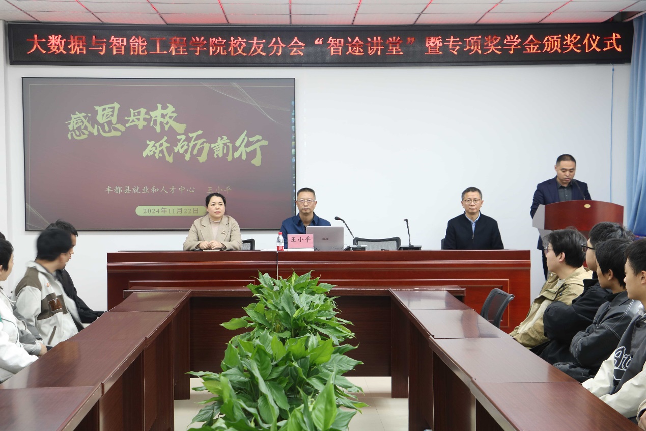 11月22日,j9九游会员工分会 “智途讲座”暨专项奖学金颁奖仪式顺利举行,公司1996级优秀员工、丰都县就业和人才中心王小平副主任应邀为公司师生作“感恩母校,砥砺前行”的主题讲座并为本次智途专项奖学金获得者颁奖。本次活动由学院黄世权经理主持,刘应成副经理、曾俊副经理及部分师生代表参加。