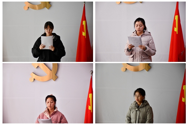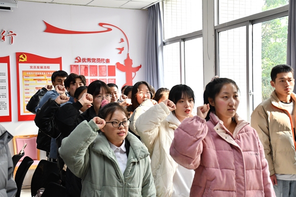 紧接着,会议进入无记名投票环节,由各位正式党员同志上台投票表决其意见。唱票结束后,在正式党员的带领下,各发展党员向党旗宣誓。
