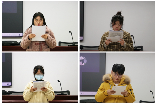 大会伊始,徐佳鑫、田明霞、杨梅、孙玲俐、顾力铭、高上钦、龙航、李芳芳8位入党申请人逐一宣读《入党申请书》,表明自己的入党动机。他们表示,自己会坚定不移跟党走,为党的工作付出自己的力量,为共产主义事业奋斗终生。每位入党申请人发言之后,各对应入党介绍人对其基本情况进行介绍并同意接纳该同志为预备党员。