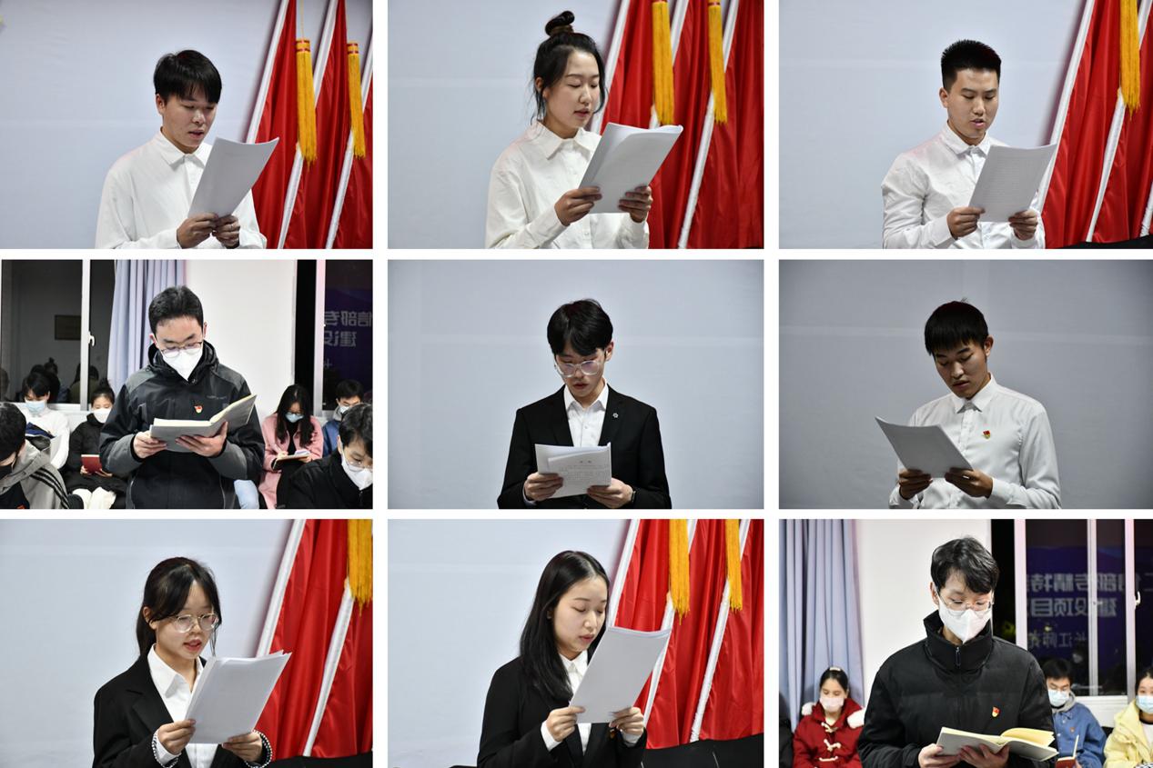 会议伊始,郑颖、苏婉钰、黄路和黄德楠四名同志上台宣读自己的入党申请书。他们分别从入党动机、对党的认识、自身的进步及不足等方面向党组织进行了汇报。各位申请人均能充分认识到党支部培养的不易,并表示要珍惜此次入党的机会,积极向党组织靠拢,为班级、学院、学校贡献自己的一份力量。紧接着,各位介绍人分别汇报了各申请人在思想、工作、生活方面的考察情况。随后,参会党员进行无记名投票。经表决,与会正式党员一致同意吸收郑颖、苏婉钰、黄路和黄德楠为中共预备党员。
