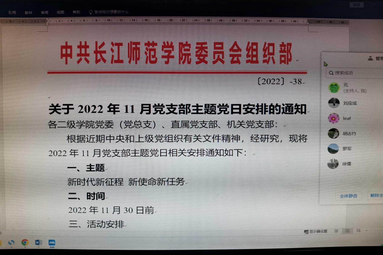 为深入学习、宣传、贯彻党的二十大精神,11月30日晚8时,公司计算机科学与技术系教师党支部于腾讯会议开展2022年第11次主题党日活动。该支部成员参与此次会议。