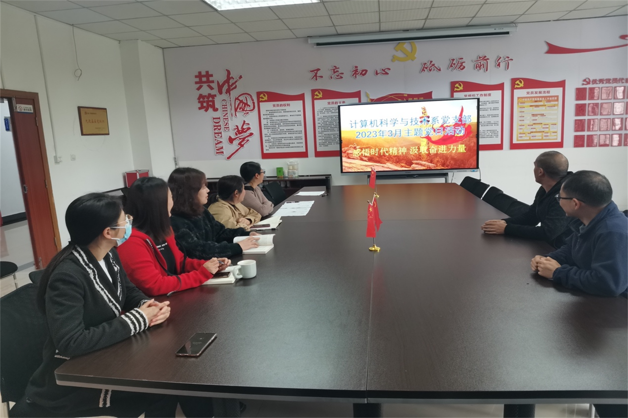 为深入学习贯彻习近平新时代中国特色社会主义思想和党的二十大精神,教育引导教职工党员把思想认识转化为实际行动,3月17日下午14时30分,公司计算机科学与技术系教师党支部于崇信楼209党员活动室开展2023年3月“感悟时代精神 汲取奋进力量”主题党日活动。支部书记邢昌元担任此次活动主持人,全体支部成员参与此次活动。
