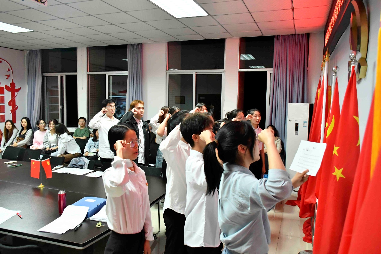 随后,员工第一党支部各党员进行无记名投票。经表决,与会正式党员一致同意吸收谢梦瑶、陈曦和、李潘、陆洁、陈道琪、周艺珈、周航、胥莉莉和易雯钧为中共预备党员。接着,在谢超林同志的带领下,谢梦瑶、陈曦和、李潘、陆洁、陈道琪、周艺珈、周航、胥莉莉和易雯钧九名同志面向党旗宣誓。