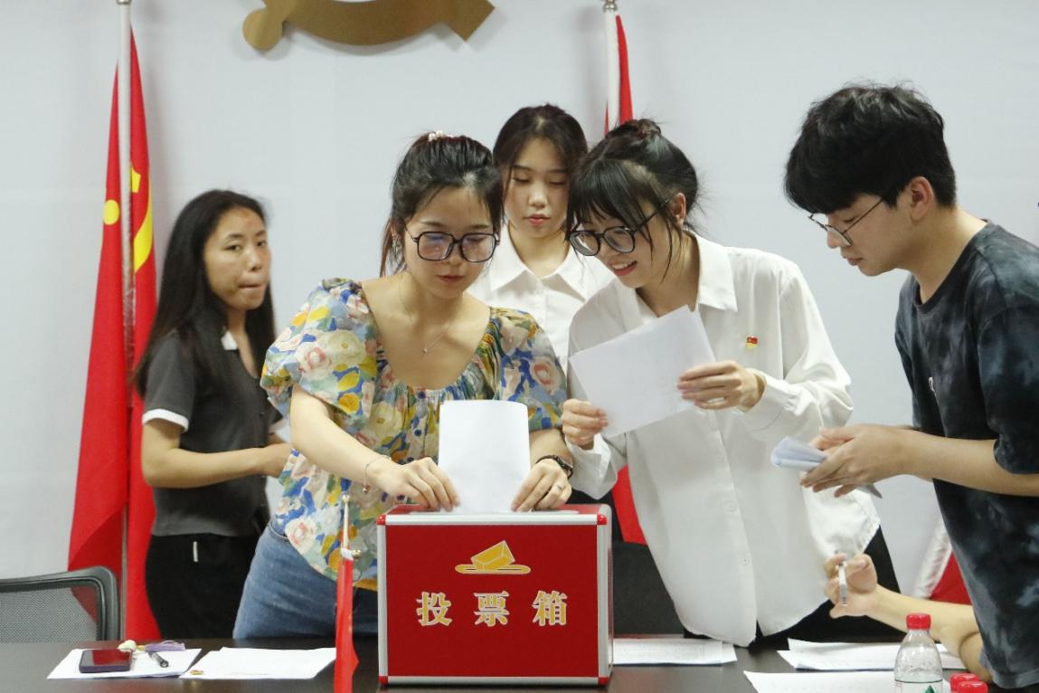 随后,党支部正式党员开始无记名投票。最后的投票结果显示,同意曾楠楠、王宇薇、傅崧玲、谢梅菊、胡镟、袁莹徽、王嘉豪、赵学聪七位预备党员转正为正式党员。
